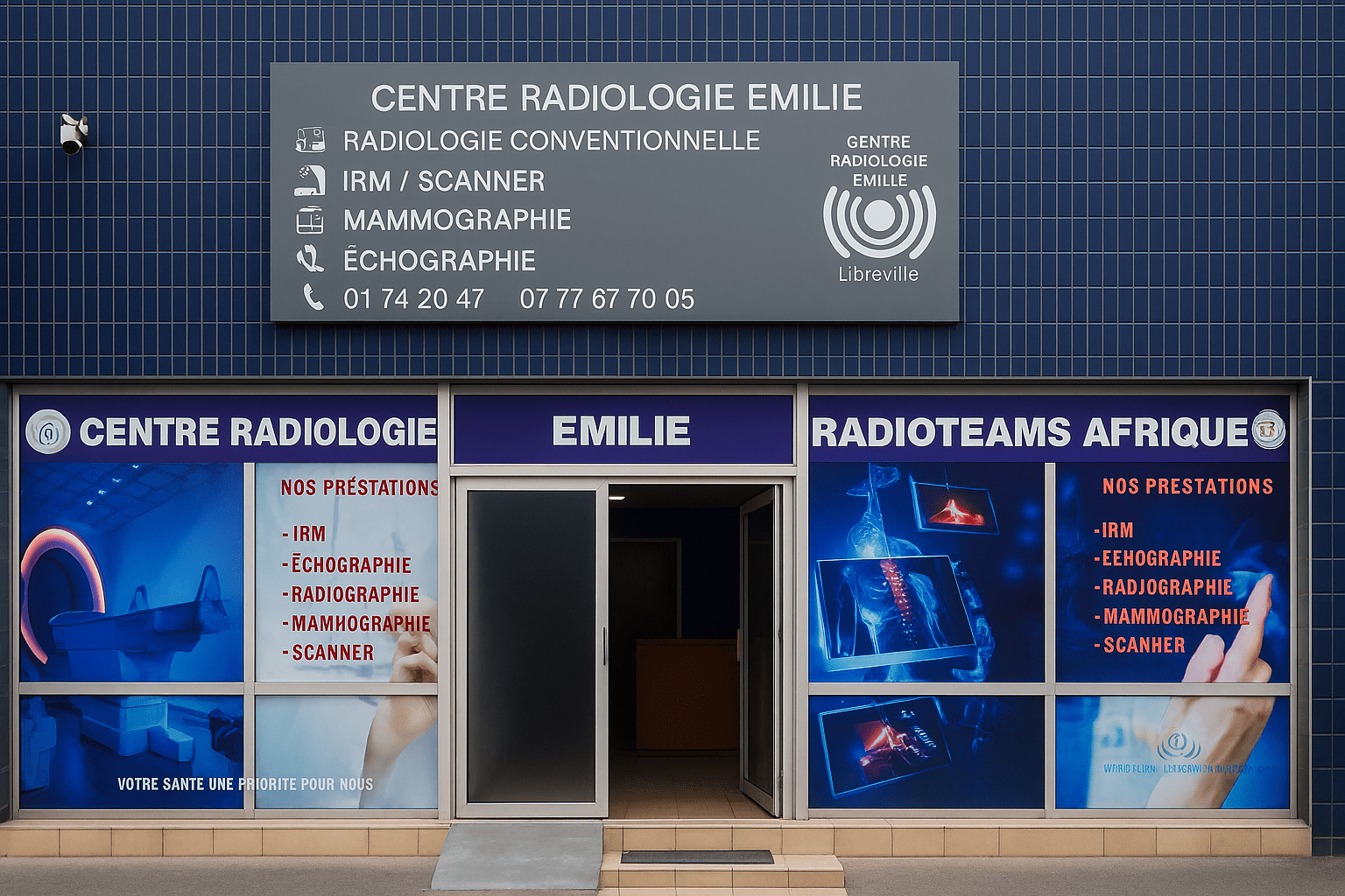 Situé à Libreville, le Centre de Radiologie Émilie vous accueille pour tous vos examens d’imagerie : radiographie, mammographie, échographie, scanner, IRM et Doppler. Nos équipements de dernière génération et notre équipe de radiologues spécialisés garantissent des diagnostics rapides et précis, avec une prise en charge adaptée à chaque patient.